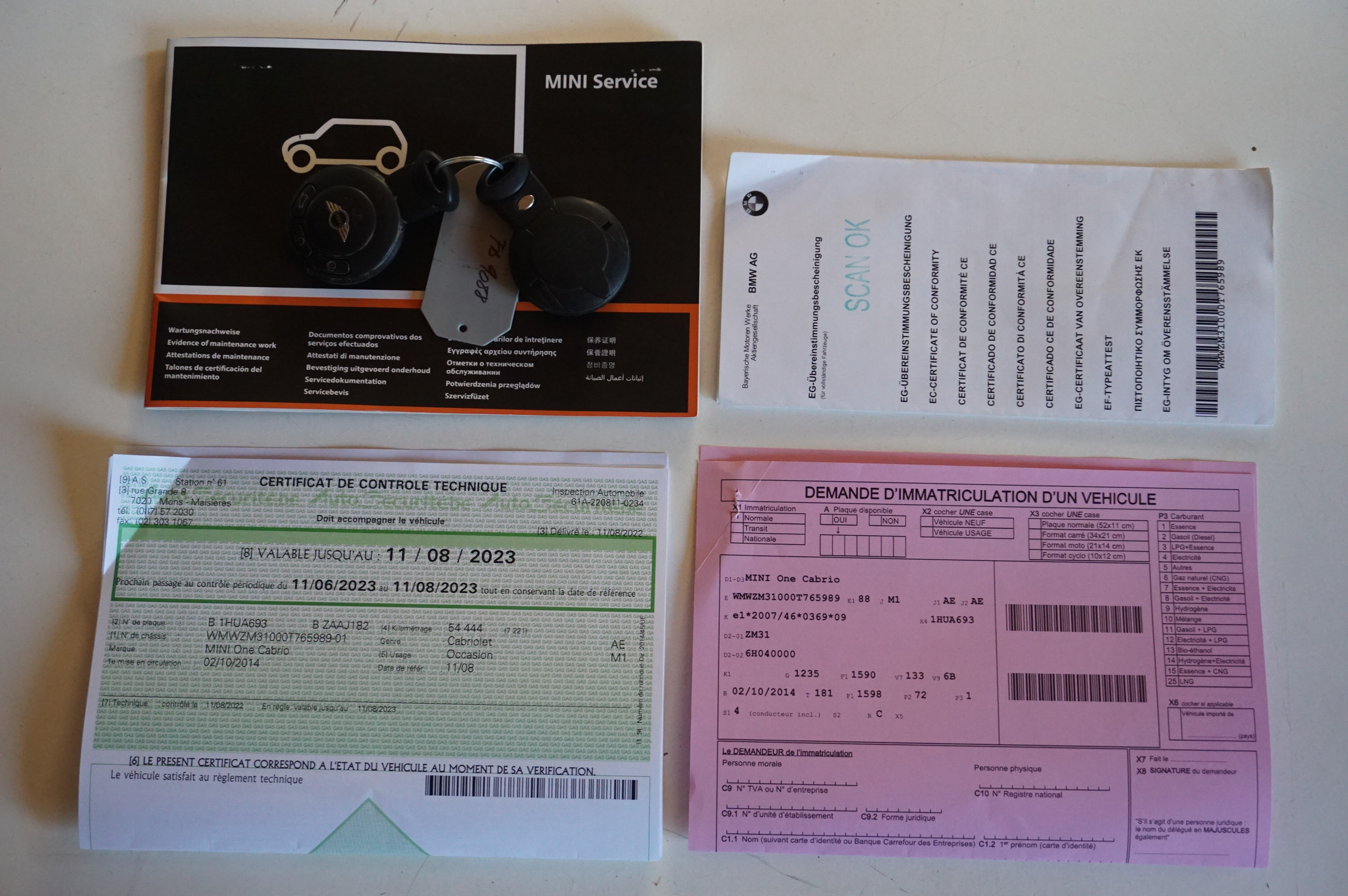 Manual 6 speeds - exterior white metallic - interior black and grey - Convertible/Roadster - 2 doors - 4 seats - 2 keys - emmission class euro6 (133) - Date of 1st registration 02/10/2014 - Last maintanance at ? km on 22/12/-0001 - validity technical inspection the 11/08/2023 - date of last timing belt replacement the 22/12/-0001 - date of production the 28/08/2014 - date of availability the 12/08/2022 - N° ID 4058
